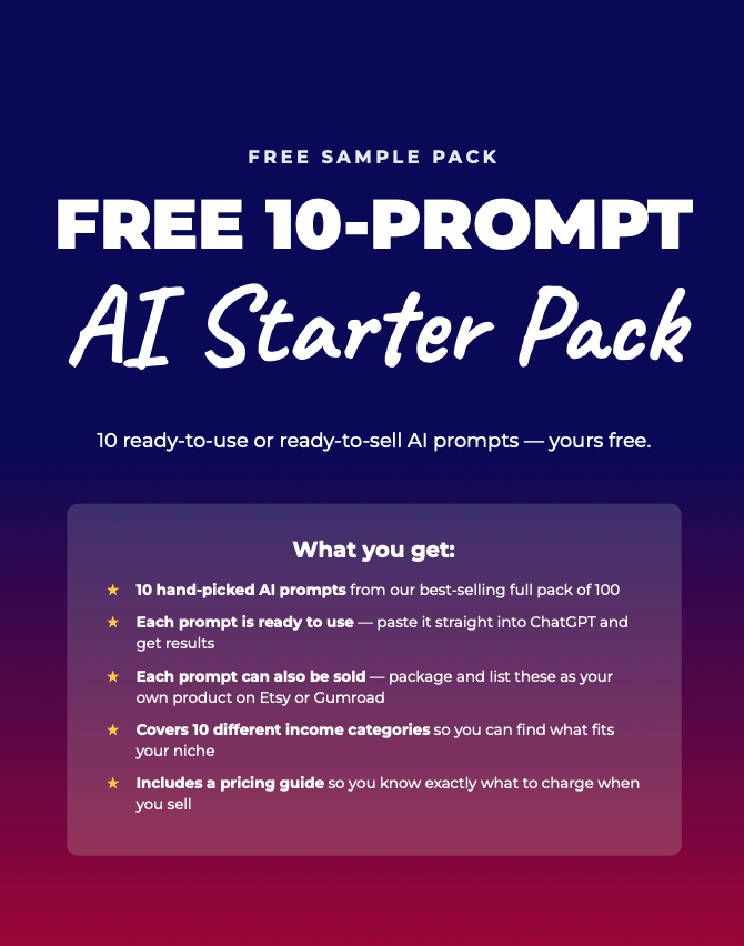 10 Prompt A.I. Starter Pack , is on its way via email. Check your inbox and your spam folder for the link or contact